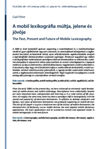 A 2000-es évek kezdetétől egészen napjainkig a mobiltelefonok és a mobiltechnológia rendkívül gyors fejlődésének vagyunk szemtanúi. Az okostelefonok kétségtelenül a legfontosabb használati eszközeinkké váltak, olyan nélkülözhetetlen segédeszközökké, amelyek a legkülönfélébb élethelyzetekben nyújtanak segítséget. Mindezzel nagyjából egy időben a lexikográfiában bekövetkezett paradigmaváltások következtében az elektronikus szótárak elterjedése és népszerűvé válása tapasztalható. Az asztali számítógépek és a laptopok mellett az új típusú elektronikus szótárak fokozatosan megjelennek a mobil eszközökön is. A tanulmány célja, hogy rövid áttekintést adjon a mobilszótárak történetéről, a mobil eszközökön történő szótárhasználat jellemzőiről, a legnépszerűbb mobilszótár-alkalmazásokról, a legfontosabb alkalmazási lehetőségekről. Végül megkísérli összefoglalni a mobil lexikográfia jelenlegi és a közeljövőben várható trendjeit. | From the early 2000s to the present day, we have witnessed an extremely rapid development of mobile phones and mobile technology. Smartphones have undoubtedly become our most important tools, indispensable aids that help us in a wide variety of life situations. At roughly the same time, there has been a paradigm shift in lexicography, with the spread and popularity of electronic dictionaries. In addition to desktop computers and laptops, new types of electronic dictionaries are gradually appearing on mobile devices. The aim of this paper is to give a brief overview of the history of mobile dictionaries, the characteristics of dictionary use on mobile devices, the most popular mobile dictionary applications, the main applications and to summarise current and expected trends in mobile lexicography in the near future.