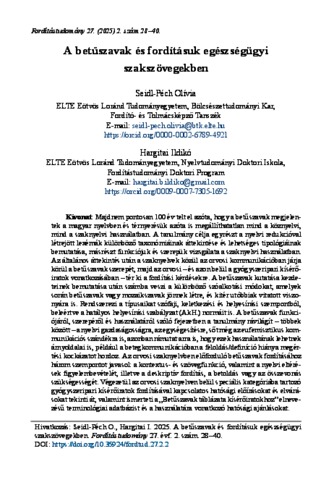Seidl-Péch, Olívia and Hargitai, Ildikó (2025) A betűszavak és fordításuk egészségügyi szakszövegekben. FORDÍTÁSTUDOMÁNY, 27 (2). pp. 28-40. ISSN 1419-7480