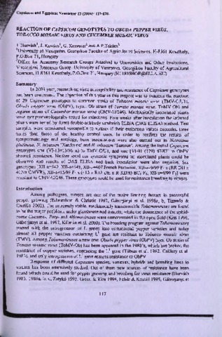 Horváth, József and Kovács, János and Kazinczi, Gabriella and Takács, András Péter (2004) Reaction of Capsicum genotypes to Óbuda pepper virus, Tobacco mosaic virus and Cucumber mosaic virus. CAPSICUM & EGGPLANT NEWSLETTER, 23. pp. 117-120. ISSN 1122-5548