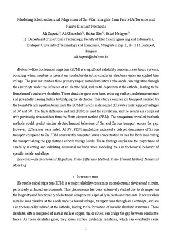 Dayoub, Ali and Gharaibeh, Ali and Illés, Balázs and Medgyes, Bálint (2025) Modeling Electrochemical Migration of Sn-9Zn: Insights from Finite Difference and Finite Element Methods. In: 2025 International Spring Seminar on Electronics Technology (ISSE), 19 August 2025, Budapest, Hungary.