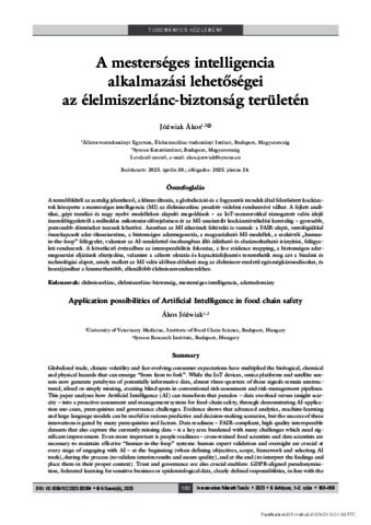 A termőföldtől az asztalig jelentkező, a klímaváltozás, a globalizáció és a fogyasztói trendek által felerősített kockázatok közepette a mesterséges intelligencia (MI) az élelmiszerlánc proaktív védelmi rendszerévé válhat. A fejlett analitikai, gépi tanulási és nagy nyelvi modelleken alapuló megoldások – az IoT-szenzorokkal támogatott valós idejű üzemfelügyelettől a műholdas mikotoxin-előrejelzésen át az MI-asszisztált kockázatértékelési keretekig – gyorsabb, pontosabb döntéseket tesznek lehetővé. Azonban az MI sikerének feltételei is vannak: a FAIR-alapú, ontológiákkal összekapcsolt adat-ökoszisztéma, a biztonságos adatmegosztás, a magyarázható MI-modellek, a szakértői human-in-the-loop” felügyelet, valamint az AI-rendelettel összhangban álló átlátható és elszámoltatható irányítási, felügyeleti rendszerek. A következő évtizedben az interoperabilitás fokozása, a live evidence mapping, a biztonságos adatmegosztási eljárások elterjedése, valamint a célzott oktatás és kapacitásfejlesztés teremthetik meg azt a bizalmi és technológiai alapot, amely mellett az MI valós időben előzheti meg az élelmiszer-eredetű egészségkárosodásokat, és hozzájárulhat a fenntarthatóbb, ellenállóbb élelmiszerrendszerekhez. | Globalized trade, climate volatility and fast-evolving consumer expectations have multiplied the biological, chemical and physical hazards that can emerge “from farm to fork”. While the IoT devices, omics platforms and satellite sensors now generate petabytes of potentially informative data, almost three-quarters of these signals remain unstructured, siloed or simply missing, creating blind spots in conventional risk-assessment and risk-management pipelines. This paper analyses how Artificial Intelligence (AI) can transform that paradox – data overload versus insight scarcity – into a proactive assessment and management system for food-chain safety, through demonstrating AI-application use-cases, prerequisites and governance challenges. Evidence shows that advanced analytics, machine-learning and large language models can be useful in various predictive and decision-making scenarios, but the success of these innovations is gated by many prerequisites and factors. Data readiness – FAIR-compliant, high quality interoperable datasets that also capture the currently missing data – is a key area burdened with many challenges which need significant improvement. Even more important is people readiness – cross-trained food scientists and data scientists are necessary to maintain effective “human-in-the-loop” systems: human expert validation and oversight are crucial at every stage of engaging with AI – at the beginning (when defining objectives, scope, framework and selecting AI tools), during the process (to validate interim results and assure quality), and at the end (to interpret the findings and place them in their proper context). Trust and governance are also crucial enablers: GDPR-aligned pseudonymisation, federated learning for sensitive business or epidemiological data, clearly defined responsibilities, in line with the EU data and AI regulatory environment, are all important factors to consider. In addition, transparent model documentation and explainable AI solutions are needed to foster stakeholder confidence and facilitate regulatory audits. Achieving the long-term AI vision will require targeted investments in data generation, open semantic standards, capacity-building curricula and continuous algorithmic audits, supported by multi-country “lighthouse” pilots that demonstrate tangible public-health value. If these align, AI will not replace expert risk assessors; it will amplify their reach, turning today’s reaction-based controls into tomorrow’s anticipatory, evidence-centred food safety governance.