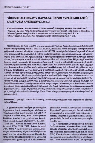 Kazinczi, Gabriella and Horváth, József and Takács, András Péter and Gáborjányi, Richard and Cseh, Eszter (2011) Vírusok alternatív gazdája: Ürömlevelű parlagfű (Ambrosia artemisiifolia L.). NÖVÉNYVÉDELEM, 47 (12). pp. 505-510. ISSN 0133-0829