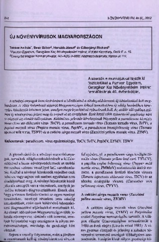 Takács, András Péter and Bese, G. and Horváth, József and Gáborjányi, Richard (2012) Új növényvírusok Magyarországon. NÖVÉNYVÉDELEM, 48 (6). pp. 242-248. ISSN 0133-0829