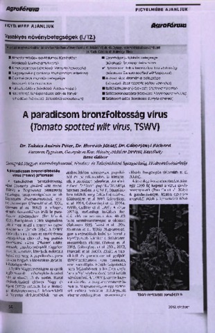 Takács, András Péter and Horváth, József and Gáborjányi, Richard and Bese, G. (2012) A paradicsom bronzfoltosság vírus (Tomato spotted wilt virus, TSWV). AGROFÓRUM, 23 (10). pp. 54-56. ISSN 1215-4911