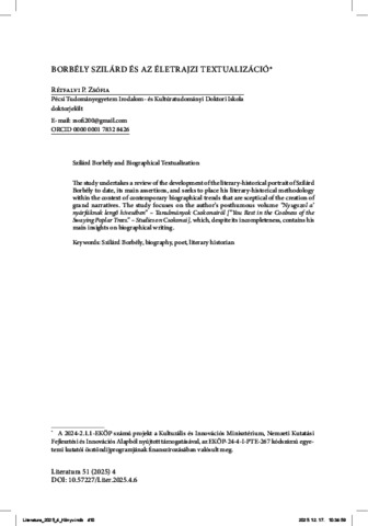 Rétfalvi, P. Zsófia (2025) Borbély Szilárd és az életrajzi textualizáció = Szilárd Borbély and Biographical Textualization. LITERATURA, 51 (4). pp. 410-425. ISSN 0133-2368
