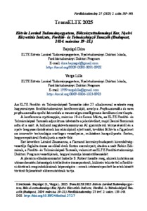 Bajnógel, Dóra and Varga, Lilla (2025) TransELTE 2025 : Eötvös Loránd Tudományegyetem, Bölcsészettudományi Kar, Nyelvi Közvetítés Intézete, Fordító- és Tolmácsképző Tanszék (Budapest, 2024. március 19–21.). FORDÍTÁSTUDOMÁNY, 27 (2). pp. 137-143. ISSN 1419-7480