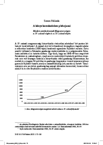Simon, Melinda (2025) A könyvkereskedelem plebejusai : Modern antikváriumok Magyarországon a 19. század végén és a 20. század elején. MAGYAR KÖNYVSZEMLE, 141 (1). pp. 72-118. ISSN 0025-0171