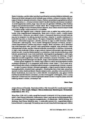 Sánta, Sára (2025) A Szent Korona első kutatója, Tanulmányok Révay Péter koronaőrről és munkásságáról, Szerk. Pálffy Géza és Tóth Gergely, Budapest, Bölcsészettudományi Kutatóközpont, Történettudományi Intézet, 2024. MAGYAR KÖNYVSZEMLE, 141 (1). pp. 151-154. ISSN 0025-0171
