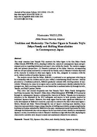 Vassileva, Magdalena (2026) Tradition and Modernity : The Father Figure in Yamada Yōji’s Tokyo Family and Shifting Masculinities in Contemporary Japan. TÁVOL-KELETI TANULMÁNYOK, 18 (1). pp. 153-178. ISSN 2060-9655