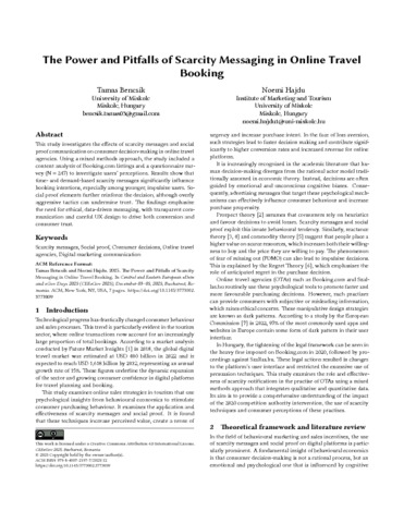 Bencsik, Tamás and Hajdú, Noémi (2025) The Power and Pitfalls of Scarcity Messaging in Online Travel Booking. In: Central and Eastern European eDem and eGov Days 2025 (CEEeGov 2025). ACM Press, New York, pp. 1-7. ISBN 9798400721977