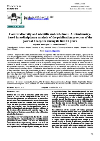 Sipos, Magdolna Anna and Nemethy, Sandor (2025) Content diversity and scientific embeddedness: A scientometry-based interdisciplinary analysis of the publication practices of the journal Ecocycles during its first 10 years. ECOCYCLES, 11 (2). pp. 91-104. ISSN 2416-2140