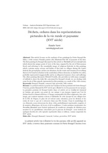 Le présent article se penche sur l’analyse de deux peintures de Pieter Bruegel l’Ancien, peintre flamand du XVIe siècle qui a illustré la vie des paysans de son époque. La première peinture de Bruegel traitée dans cet article est Le Combat de Carnaval et Carême, qui montre son point de vue unique à son époque, inspiré par l’art de Jérôme Bosch et faisant référence à l’image remarquable des fêtes religieuses. Sur cette image, qui contient maintes actions et habitudes de cette époque-là aux villages lors de la fête de Pâques, le plan du sol retient notre attention, pour les déchets et les restes de tout ce qui est à retrouver dans une fête foraine. Dans la symbolique de ces éléments, nous retrouvons les deux côtés, probablement représentés exagérés et de manière allégorique, de la joie et de la souffrance. L’autre peinture mentionnée, les Proverbes flamands nous fournit également de nombreux exemples de détritus pour montrer la vie quotidienne caricaturée par le pinceau de Bruegel : nous traitons de quelques facettes de cette épisode représentée dans ce tableau, comme empreinte du XVIe siècle.