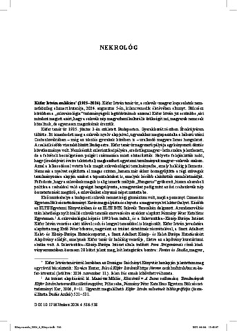 Kovács, Eszter (2024) Käfer István emlékére (1925–2024). MAGYAR KÖNYVSZEMLE, 140 (4). pp. 536-538. ISSN 0025-0171