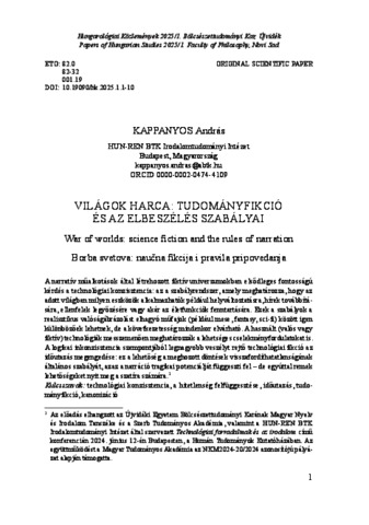 Kappanyos, András (2025) Világok harca : Tudományfikció és az elbeszélés szabályai = War of worlds: science fiction and the rules of narration : Borba svetova: naučna fikcija i pravila pripovedanja. HUNGAROLÓGIAI KÖZLEMÉNYEK (ÚJVIDÉK), 26 (1). pp. 1-10. ISSN 0350-2430