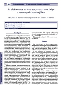 Vizsgálatunkban az autósportban innovatívan, a trendeket követve megjelenő elektromos meghajtású autóbajnokságokat elemeztük. Arra kerestük a választ, hogy milyen szerepet tölthet be egy elektromos bajnokság a versenyzők pályafutásában. Kutatásunk során megvizsgáltuk, hogy a 2022-es évben a három legnagyobb jelentőségű elektromos sorozatban induló versenyzők hol tartanak pályafutásukban, és karrierjükben milyen szerepet kap az elektromos járművel versenyzett szezon vagy szezonok. Saját tapasztalataikról és a sorozatokban való versenyzéshez kapcsolódó céljaikról, félig strukturált interjú keretében kérdeztünk öt versenyzőt, és egy elektromos világkupagyőztes csapatfőnököt, valamint megkérdeztük a HUMDA Academy mentorait arról, hogy ők hogyan látják, egy versenyző esetében milyen szerepet tölthet be egy ilyen bajnokság. A kutatás szekunder adatokkal vizsgálta a versenyzők karrierjét és benne az adott sorozat helyét. A kapott válaszok alapján megállapítottuk, hogy a versenysorozatok, a sorozat presztízsétől függően különböző szerepet tölthetnek be egy sportoló pályafutásában, a nagyobb népszerűségű sorozatok jelenthetnek csúcspontot, vagy lokális csúcspontot, de magasabb rangú, benzines sorozatokhoz való továbblépésre is használhatják, míg az alacsonyabb népszerűségű, de ugyanúgy komoly technikai innovációkat tartalmazók leginkább az amúgy sikeres benzines pályafutással rendelkező versenyzőket vonzzák, akik a hagyományos pályafutásukkal párhuzamosan, kiegészítésként indulnak ezekben a sorozatokban, azok mellett a pályájuk elején tartó versenyzők mellett, akik nagyobb nyilvánosság elérésére és tapasztalatszerzésre használják ezeket a sorozatokat. | Our work focused on electric engine championships that are innovative and are following the trends in motorsport. We sought to investigate what role an championship based on electric vechicles can play in the careers of racers. In our research, we examined where the drivers participating in the three most significant electric series of 2022 stood in their careers and what role the season or seasons spent racing electric vehicles played. We interviewed five drivers, an electric World Cup-winning team director, and also asked the mentors of HUMDA Academy about their perspectives on the role such championships can play in a driver’s career. Additionally, we explored the drivers’ own experiences, and their goals related to competing in these series. We analyzed the drivers’ careers and the position of the given series within them using secondary data. The findings revealed that the racing series can play different roles in an athlete’s career depending on the prestige of the series. Higher-profile series can serve as a pinnacle or a local peak in a driver’s career, or as a stepping stone to higher-ranked, petrol-based series. Meanwhile, lower-profile series, which still feature significant technical innovations, tend to attract drivers with already successful careers in series using combustion engines, who participate in these series as a complement to their original career. These series also appeal to emerging drivers at the start of their careers, who use them to gain greater public visibility and valuable experience.