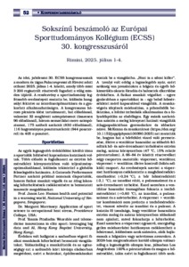 Kneffel, Zsuzsanna and Hegyi, András and Négyesi, János and Soós, István and Uvacsek, Martina (2025) Sokszínű beszámoló az Európai Sporttudományos Kollégium (ECSS) 30. kongresszusáról : Rimini, 2025. július 1-4. MAGYAR SPORTTUDOMÁNYI SZEMLE, 26 (4(116)). pp. 52-55. ISSN 1586-5428