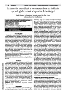 Napjainkra az ép értelmű látássérült tanulók jelentős hányada tanul többségi iskolában. Integrált/ inkluzív oktatásuk jelentős terhet ró tanáraikra, akik jellemzően nem rendelkeznek a befogadáshoz szükséges (gyógy) pedagógiai ismeretekkel, s rendszerszintű hiányosságok okán nem részesülnek kellő mértékű szakértő segítségben sem. A testnevelés a fogyatékos tanulók befogadó oktatásának sokszor méltánytalanul háttérbe szorított területe. Hasonlóan nehéz helyzetben vannak a látássérült felnőttek, mivel a speciális ismeretek hiányában az edzők többsége nem tudja, miként segítheti részvételüket egy többségi sportfoglalkozáson. Írásunk célja áttekinteni, milyen környezeti, tárgyi, valamint módszertani adaptáció révén valósulhat meg a látássérült személyek inkluzív részvétele a különböző sportfoglalkozásokon. | Nowadays the majority of students with VI (visual impairment) and with typical cognitive development learn in mainstream education. Their integration/ inclusion in the class is often far too challenging for their teachers, who lack of knowledge on special education, and also fail to get expert support to facilitate their work. Physical education is an area of inclusive education which is paid disproportionately little attention. Adults with VI who want to get involved in physical activity are in a similarly hard situation, because very few coaches have knowledge on how to include them in mainstream sport sessions. This study introduces which adaptations of the environment, the equipment and the methodology can facilitate inclusion into mainstream physical activity for individuals with VI.