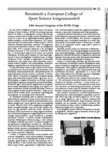 Beszámoló a European College of Sport Science kongresszusáról : 24th Annual COngress of the ECSS, Prága = 24th Annual Congress of the ECSS, Prága