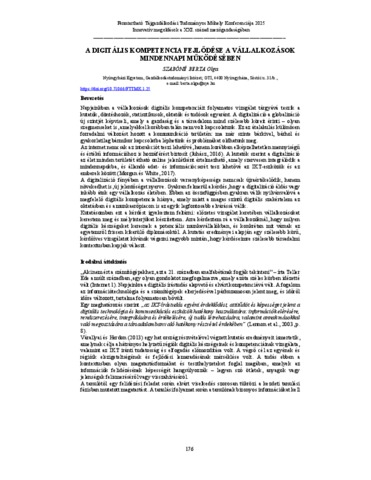 Szabóné Berta, Olga (2025) A digitális kompetencia fejlődése a vállalkozások mindennapi működésében = The Evolution of Digital Competence in the Everyday Functioning of Enterprises. In: Fenntartható Tájgazdálkodási Tudományos Műhely konferenciája 2025 : Innovatív megoldások a XXI. század mezőgazdaságában. Nyíregyházi Egyetem, Műszaki és Agrártudományi Intézet, Nyíregyháza, pp. 176-182. ISBN 9786156032836