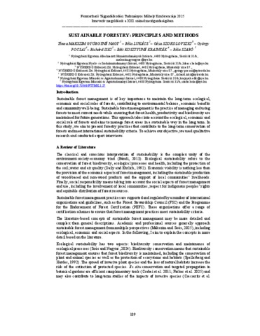 Makszim Györgyné Nagy, Tímea and Lukács, Béla and Szokolovszki, Géza and Pocsai, György and Iski, Richárd and Kosztyuné Krajnyák, Edit and Szabó, Béla (2025) Sustainable Forestry: Principles and Methods. In: Fenntartható Tájgazdálkodási Tudományos Műhely konferenciája 2025 : Innovatív megoldások a XXI. század mezőgazdaságában. Nyíregyházi Egyetem, Műszaki és Agrártudományi Intézet, Nyíregyháza, pp. 189-195. ISBN 9786156032836