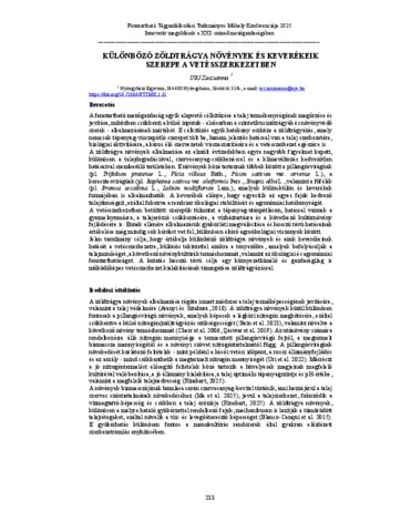 A zöldtrágyázás a fenntartható mezőgazdaság egyik kulcsfontosságú eszköze, amely komplex módon járul hozzá a talaj termékenységének megőrzéséhez, a vetésszerkezet stabilitásához, valamint a külső inputok - különösen a szintetikus műtrágyák és növényvédő szerek - mérsékléséhez. A zöldtrágyázás javítja a talaj fizikai, kémiai és biológiai tulajdonságait, miközben hozzájárul a vetésszerkezet ökológiai és gazdasági fenntarthatóságához. Jelen tanulmány irodalmi áttekintés alapján értékeli különböző zöldtrágya növényfajok és fajkeverékek talajra, utónövényekre és a vetésforgó egészére gyakorolt hatásait. Az elemzett kutatások alapján megállapítható, hogy a pillangósvirágúak jelentős szerepet játszanak a nitrogénmegkötésben, míg a keresztesvirágú fajok biofumigáns és gyomszupresszív tulajdonságai révén a növényvédelemben is fontos szerepet töltenek be. A fajkeverékek alkalmazása - különösen funkcionálisan eltérő növények esetén - szinergikus hatásokat eredményez. A hosszú távú vizsgálatok szerint a zöldtrágyázás csökkenti a talajdegradációt, növeli a szervesanyag-tartalmat, javítja a hozambiztonságot és mérsékli az inputigényt. A tanulmány rávilágít arra, hogy a zöldtrágyázás alkalmazása különösen indokolt lehet a klímaváltozás által sújtott, degradációval veszélyeztetett területeken, valamint a hosszú távú talajvédelem és termésbiztonság biztosítása érdekében. | Green manure is a key tool in sustainable agriculture, contributing in a complex way to the preservation of soil fertility, the stability of the crop structure, and the reduction of external inputs - especially synthetic fertilizers and pesticides. Green manure improves the physical, chemical and biological properties of the soil, while contributing to the ecological and economic sustainability of the crop structure. This study evaluates the effects of different green manure plant species and species mixtures on the soil, follow-up crops and the crop rotation as a whole, based on a literature review. Based on the analyzed research, it can be concluded that legume species play a significant role in nitrogen fixation, while cruciferous species also play an important role in plant protection due to their biofumigant and weed suppressive properties. The use of species mixtures - especially in the case of functionally different plants - results in synergistic effects. Long-term studies have shown that green manure reduces soil degradation, increases organic matter content, improves yield security and reduces input requirements. The study highlights that the use of green manure may be particularly justified in areas affected by climate change and at risk of degradation, and in order to ensure long-term soil protection and crop security.