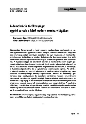Gyursánszky, Ágnes and Zsille, Katalin Lenke (2025) A demokrácia törékenysége: egyéni sorsok a késő modern munka világában = The Fragility of Democracy: Individual Fates in the World of Late Modern Work. REPLIKA (135). pp. 93-123. ISSN 0865-8188