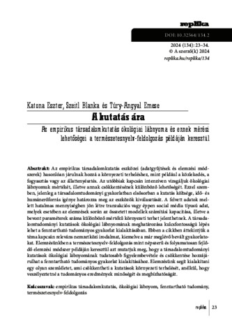 Az empirikus társadalomkutatás eszközei (adatgyűjtések és elemzési módszerek) hasonlóan járulnak hozzá a környezeti terheléshez, mint például a közlekedés, afogyasztás vagy az állattenyésztés. Az utóbbiak kapcsán intenzíven vizsgáljuk ökológiailábnyomuk mértékét, illetve annak csökkentésének különböző lehetőségét. Ezzel szemben, jelenleg a társadalomtudományi gyakorlatban elsősorban a kutatás költsége, idő- éshumánerőforrás igénye határozza meg az eszközök kiválasztását. A felvett adatok mellett hatalmas mennyiségben jön létre tranzakciós vagy éppen social média típusú adat,melyek esetében az elemzések során az összetett modellek számítási kapacitása, illetve abevont paraméterek száma különböző mértékű környezeti terhet jelenthetnek. A társadalomtudományi kutatások ökológiai lábnyomának meghatározása kulcsfontosságú lépéslehet a fenntartható tudományos gyakorlat kialakításában. Ebben a cikkben áttekintjük atéma kapcsán releváns nemzetközi irodalmat, kiemelve a már meglévő bevált gyakorlatokat. Elemzésünkben a természetesnyelv-feldolgozás mint népszerű és folyamatosan fejlődő elemzési módszer példáján keresztül azt mutatjuk meg, hogy a társadalomtudományikutatások ökológiai lábnyomának tudatosabb figyelembevétele és csökkentése hozzájárulhat a fenntartható tudományos gyakorlat kialakításához. Elemzésünk segít kialakítaniegy olyan szemléletet, ami csökkentheti a kutatások környezeti terhelését, anélkül, hogyveszélyeztetné a tudományos eredmények minőségét és megbízhatóságát.