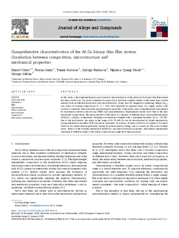 Olasz, Dániel and Szász, Noémi and Kolonits, Tamás and Radnóczi, György and Chinh, Nguyen Quang and Sáfrán, György (2026) Comprehensive characterisation of the Al-Cu binary thin film system: Correlation between composition, microstructure and mechanical properties. JOURNAL OF ALLOYS AND COMPOUNDS, 1051. No. -186114. ISSN 0925-8388