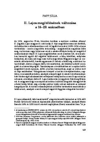 Papp, Júlia (2025) II. Lajos megítélésének változása a 16–20. században. In: Mítoszok és értelmezések. Tanulmányok a középkori magyar uralkodók megítéléséről. Magyar Történelmi Emlékek. Értekezések . ELTE Humán Tudományok Kutatóközpontja Történettudományi Kutatóintézet, Budapest, pp. 169-183. ISBN 9789634165002