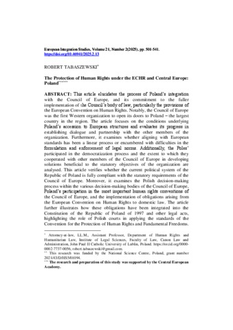 Tabaszewski, Robert (2025) The Protection of Human Rights under the ECHR and Central Europe: Poland. EUROPEAN INTEGRATION STUDIES, 21 (2). pp. 501-541. ISSN 1588-6735
