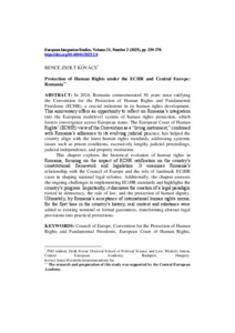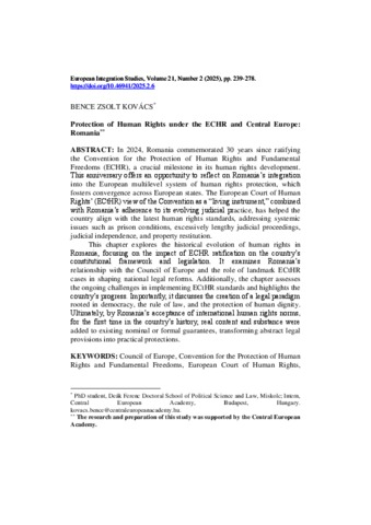 Kovács, Bence Zsolt (2025) Protection of Human Rights under the ECHR and Central Europe: Romania. EUROPEAN INTEGRATION STUDIES, 21 (2). pp. 239-278. ISSN 1588-6735