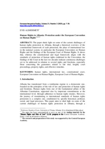 Alimehmeti, Evis (2025) Human Rights in Albania: Protection under the European Convention on Human Rights. EUROPEAN INTEGRATION STUDIES, 21 (2). pp. 7-30. ISSN 1588-6735