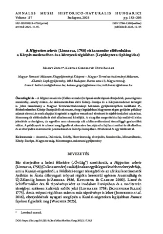Bálint, Zsolt and Katona, Gergely Péter and Tóth, Balázs Ferenc (2025) A Hippotion celerio (Linnaeus, 1758) ritka szender előfordulása a Kárpát-medencében és a környező régiókban (Lepidoptera: Sphingidae). ANNALES MUSEI HISTORICO-NATURALIS HUNGARICI, 117. pp. 183-203. ISSN 0521-4726