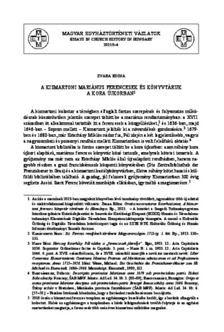 Zvara, Edina Éva (2025) A kismartoni mariánus ferencesek és könyvtáruk a kora újkorban. MAGYAR EGYHÁZTÖRTÉNETI VÁZLATOK, 2025 (3-4). pp. 20-59. ISSN 0865-5227