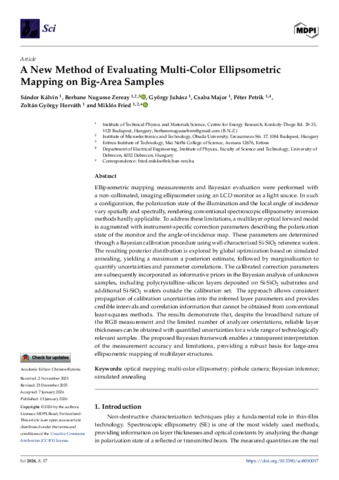 Kálvin, Sándor Csaba and Zereay, Berhane Nugusse and Juhász, György and Major, Csaba and Petrik, Péter and Horváth, György Zoltán and Fried, Miklós (2026) A New Method of Evaluating Multi-Color Ellipsometric Mapping on Big-Area Samples. SCI, 8 (1). No. 17. ISSN 2413-4155