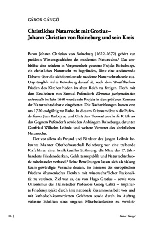 Gángó, Gábor (2025) Christliches Naturrecht mit Grotius : Johann Christian von Boineburg und sein Kreis. In: Grotius lesen - Grotius lehren. Mitteldeutscher Verlag, Halle (Saale), pp. 36-47.
