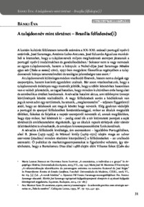 A portugál nyelvű irodalmakat ismerők jól tudják, hogy a tulajdonnevek milyen nagy szerepet játszanak a portugál nyelvterületen élők gondolkodásában és hagyománytudatában. A XVIII. század óta tervezett, de a csak a XX. század derekán a Planaltón megépült brazil főváros neve még a múlt század ötvenes éveiben, az alapkő ünnepélyes letétele idején sem dőlt el. Eszmetörténeti cikkében Bánki Éva a különféle – tulajdonképp mind a XVI. századból, a felfedezések korából eredeztethető – névvariánsok (Brasília, Vera Cruz) által sugallt ideológiai tartalmakat, az egyes tulajdonneveket övező, történelmileg is változó képzettársításokat igyekszik kibontani, bemutatva azt is, hogy ezek a nevekben rejtett vágyképek és ideológiai üzenetek hogyan formálták a barokk kori, a XIX. század végi és a mai Brazília jövőképét és kiválasztottságtudatát, ahogy a sokak által csúfos kudarcnak vagy éppenséggel fenomenális építészeti remekműnek tekintett Brasília/Brazíliaváros topográfiáját, építészeti arculatát, sajátos „mitológiáját”. | Those familiar with Portuguese literature are acutely aware of what a prominent role proper nouns play in the way people living in Portuguese-speaking areas think, as well as how they approach their traditions. The Brazilian capital had been planned since the 18th century, but was only built in the mid-20th century. Even during the 1950s, when the foundation stone was ceremoniously laid down, its name had not yet been decided upon. In her article discussing intellectual history, Éva Bánki aims to uncover the ideological subtext and historical beliefs contained within the different name variants (Brasília, Vera Cruz ) originating from the 16th century, the Age of Exploration. Furthermore, she unveils the manner in which these hidden wishes and ideological messages influenced Brazil’s vision of the future and concept of being chosen in the Baroque, the late 19th century and today. Moreover, the topography, architectural image and unique ‘mythology’ of Brasília—a city considered by many to be an atrocious failure and yet a phenomenal masterpiece of architecture by others—is also discussed by the author.
