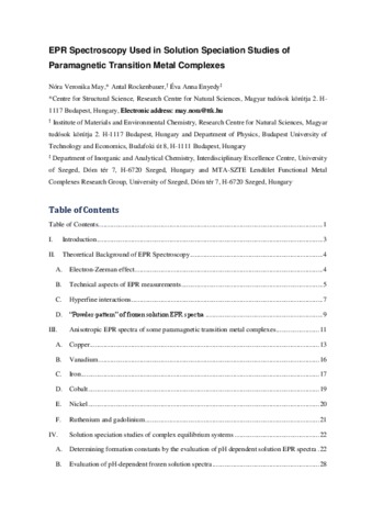 May, Nóra Veronika and Rockenbauer, Antal and Enyedy, Éva Anna (2025) EPR Spectroscopy Used in Solution Speciation Studies of Paramagnetic Transition Metal Complexes. In: Emerging Analytical Techniques for Chemical Speciation Studies. Series on Chemistry, Energy and the Environment (16). World Scientific, Singapore. ISBN 9811296731; 9789811296734