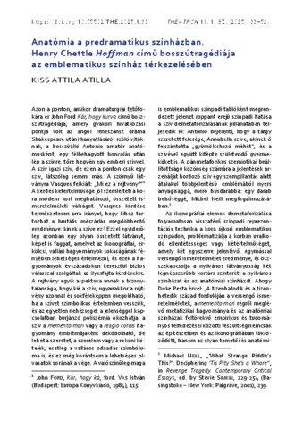 Kiss, Attila Atilla (2025) Anatómia a predramatikus színházban : Henry Chettle Hoffman című bosszútragédiája az emblematikus színház térkezelésében = Anatomy in the Predramatic Theatre: Henry Chettle’s Revenge Tragedy Hoffman in the Space of the Emblematic Theatre. THEATRON: SZÍNHÁZTUDOMÁNYI PERIODIKA, 19 (1). pp. 33-52. ISSN 1418-9941