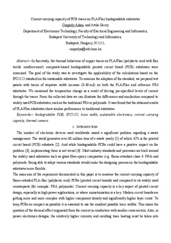 Csapody, Ádám and Géczy, Attila (2025) Current carrying capacity of PCB traces on PLA/Flax biodegradable substrates. In: 2025 International Spring Seminar on Electronics Technology (ISSE), Budapest, Hungary.