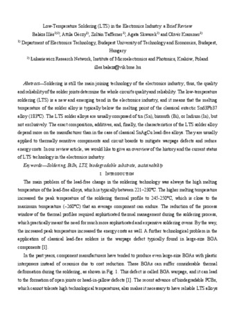 Illés, Balázs and Géczy, Attila and Tafferner, Zoltán and Skwarek, Agata and Krammer, Olivér (2025) Low-Temperature Soldering (LTS) in the Electronics Industry: a Brief Review. In: 2025 International Spring Seminar on Electronics Technology (ISSE), Budapest, Hungary.