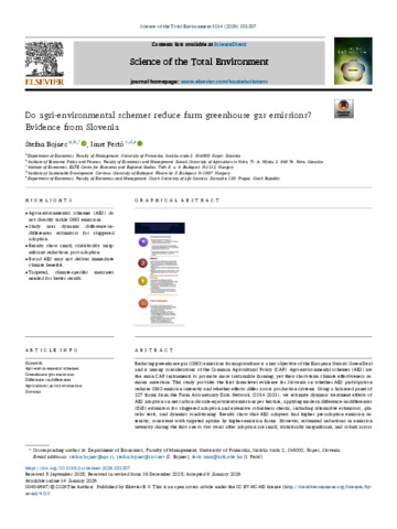 Bojnec, Štefan and Fertő, Imre (2026) Do agri-environmental schemes reduce farm greenhouse gas emissions? Evidence from Slovenia. SCIENCE OF THE TOTAL ENVIRONMENT, 1014. No. 181387. ISSN 0048-9697