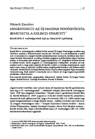 Németh, Zsombor (2025) Megrendelte az Új Magyar Vonósnégyes, bemutatta a Kolisch-kvartett : Bartók Béla 6. vonósnégyesének útja az íróasztaltól a pódiumig. MAGYAR ZENE, 63 (1). pp. 67-98. ISSN 0025-0384
