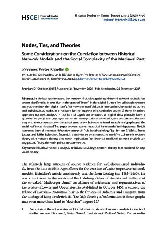 Preiser-Kapeller, Johannes (2025) Nodes, ties, and theories : Some Considerations on the Correlation between Historical Network Models and the Social Complexity of the Medieval Past. HISTORICAL STUDIES ON CENTRAL EUROPE, 5 (2). pp. 4-30. ISSN 2786-0930