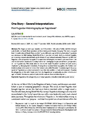 Bíró, László (2025) One Story – Several Interpretations : Post-Yugoslav Historiography on Yugoslavia. HISTORICAL STUDIES ON CENTRAL EUROPE, 5 (2). pp. 243-268. ISSN 2786-0930