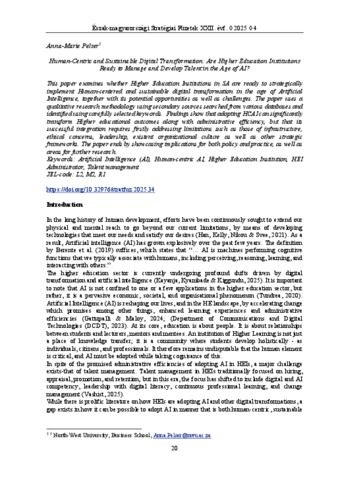 | Uncontrolled Keywords: | Artificial Intelligence (AI), Human-centric AI, Higher Education Institution, HEI Administrator, Talent management |