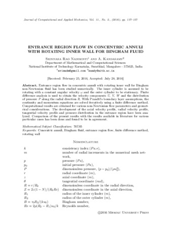 | Uncontrolled Keywords: | concentric annuli, Bingham fluid, entrance region flow, finite difference method, rotating wall |
