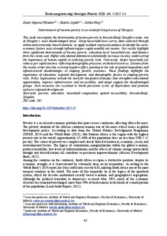Siposné Nándori, Eszter and Lipták, Katalin and Nagy, Zoltán (2025) Determinants of Income Poverty in an Underprivileged Area of Hungary. ÉSZAK-MAGYARORSZÁGI STRATÉGIAI FÜZETEK, 22 (04). pp. 61-72. ISSN 1786-1594