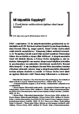 Kanyó, Ferenc (2025) Mi képzeltük Koppányt? I. (Szent) István emlékezetének újabban vihart kavart kérdései. MÚLTUNK - POLITIKATÖRTÉNETI FOLYÓIRAT, 70 (4). pp. 220-228. ISSN 0864-960X