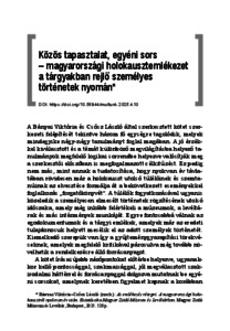 Kalló, Olga Borbála (2025) Közös tapasztalat, egyéni sors – magyarországi holokausztemlékezet a tárgyakban rejlő személyes történetek nyomán. MÚLTUNK - POLITIKATÖRTÉNETI FOLYÓIRAT, 70 (4). pp. 240-246. ISSN 0864-960X